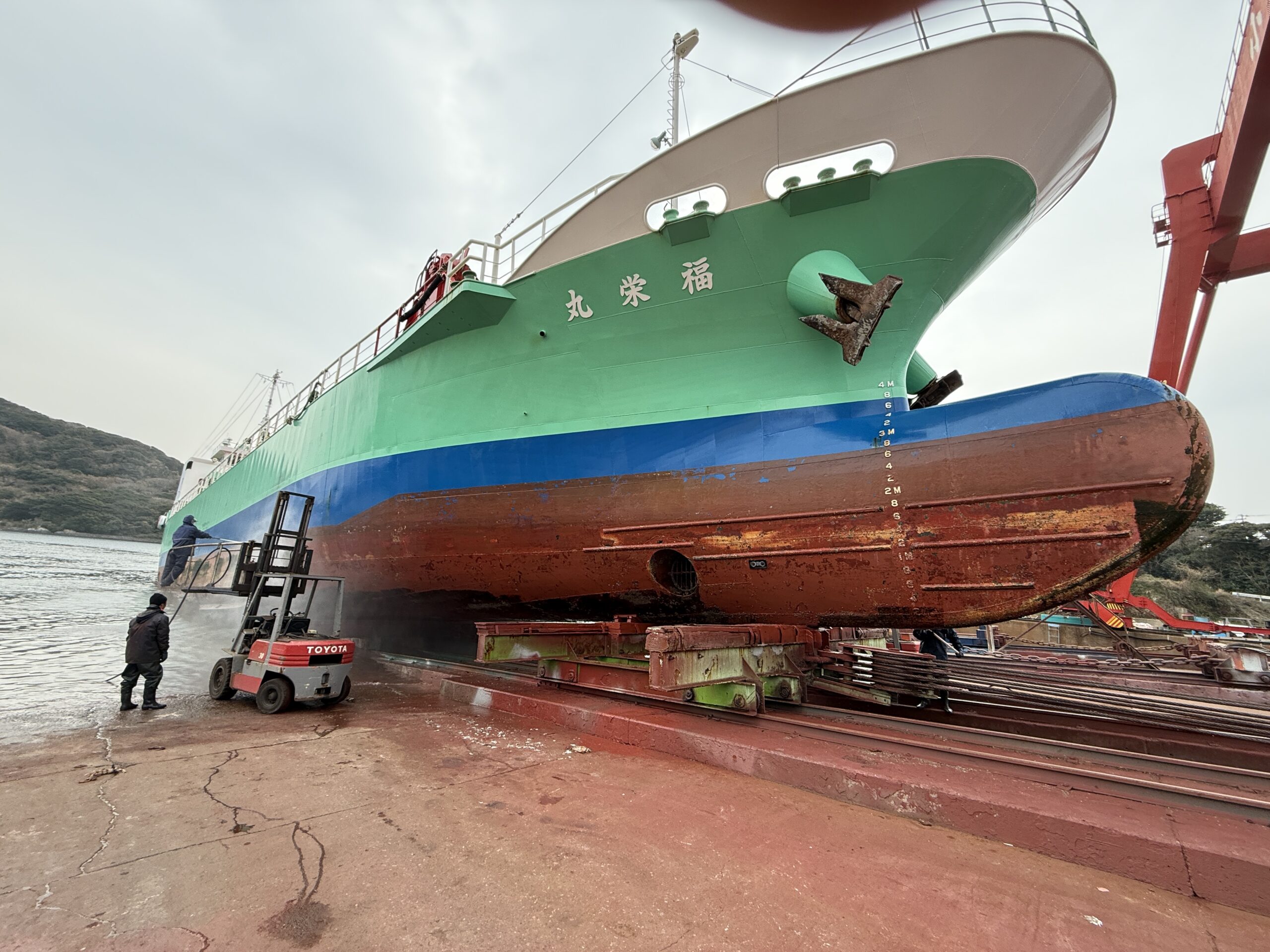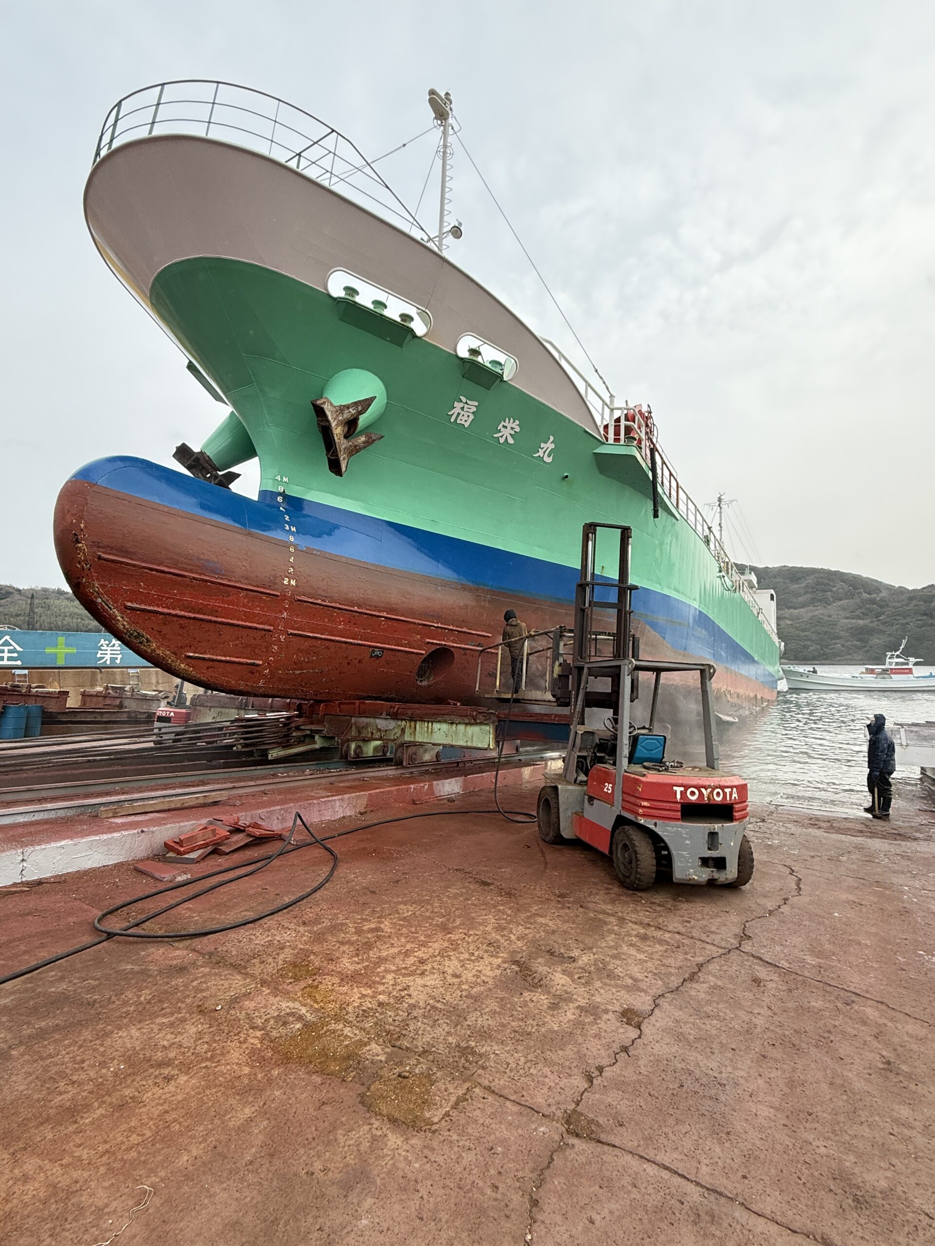 社船「福栄丸」中間検査 2026年2月26日 2月16日から26日まで、社船「福栄丸」が有限会社小金丸造船様に入渠いたしました。有限会社小金丸造船の皆様、株式会社福栄の皆様、丁寧な点検、整備のほど有り難うございます。